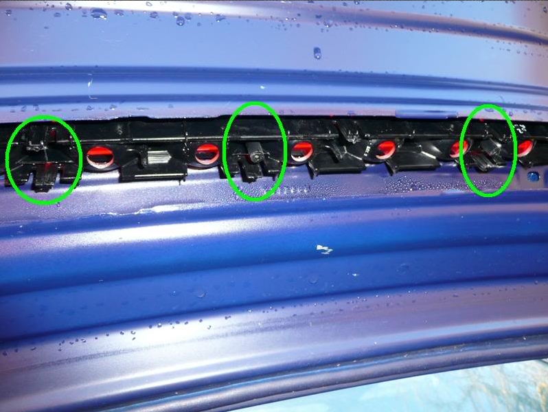 The PCB which powers the individual brake lights is held in place by 3 x Phillips screws -take your Phillips screwdriver and remove these (highlighted in green circles in below pictures to show location):