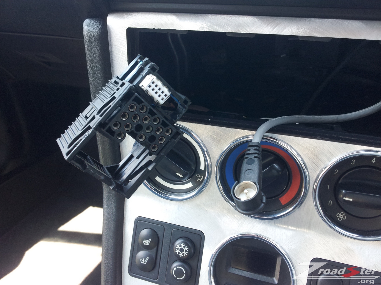 6. Connect the converted wiring harness and aerial connectors to the back of the head unit. The Sony unit has additional wire on the back which you probably won’t be using.