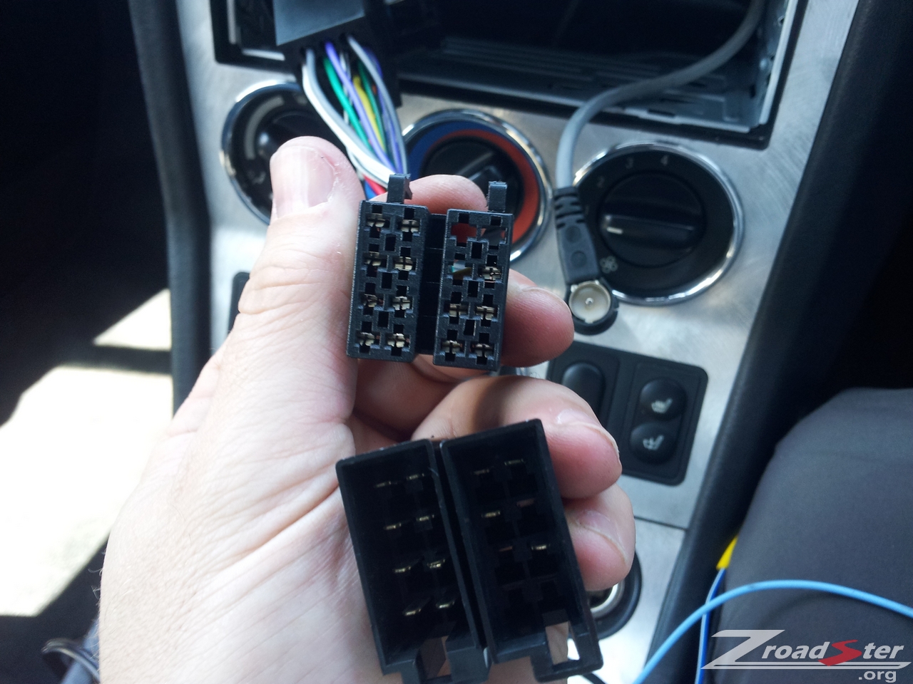 5. Attach the ISO Connector to the cars wiring loom. Make sure that you align the connectors correctly, as they will only fit in one correct combination! You can also see that I have fitted the Sony head unit cradle to the radio aperture.